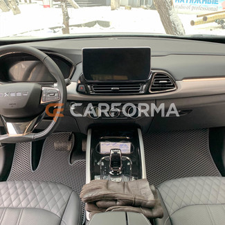 Автоковрики ЕВА не впитывают, а удерживают грязь в ячейках. Вода не катается по полу, как в резиновых половичках, однако, её все равно видно. ЕВА удобны тем, что их легко достать не пролив и вытряхнуть. Они дешевле.