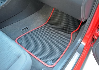 Автоковрики ЕВА не впитывают, а удерживают грязь в ячейках. Вода не катается по полу, как в резиновых половичках, однако, её все равно видно. ЕВА удобны тем, что их легко достать не пролив и вытряхнуть. Они дешевле.