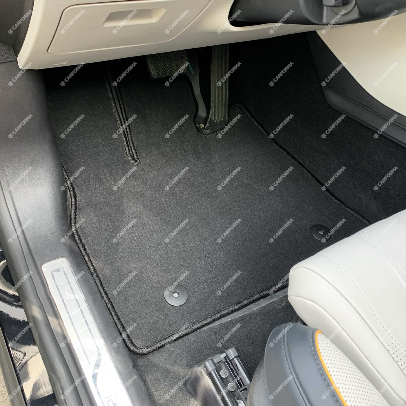 Если в машине в полу есть оригинальные крепежи, в ковриках устанавливается ответная часть. Благодаря этому, ковер надёжно фиксируется на месте для удобства и безопасности.