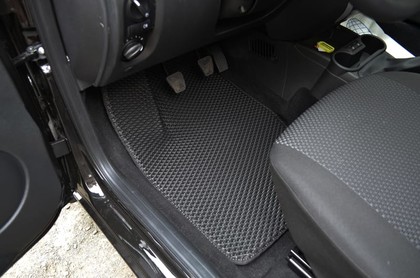 Автоковрики ЕВА не впитывают, а удерживают грязь в ячейках. Вода не катается по полу, как в резиновых половичках, однако, её все равно видно. ЕВА удобны тем, что их легко достать не пролив и вытряхнуть. Они дешевле.