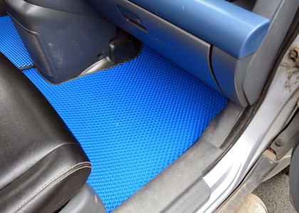 Автоковрики ЕВА не впитывают, а удерживают грязь в ячейках. Вода не катается по полу, как в резиновых половичках, однако, её все равно видно. ЕВА удобны тем, что их легко достать не пролив и вытряхнуть. Они дешевле.