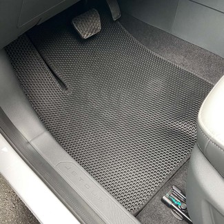 Автоковрики ЕВА не впитывают, а удерживают грязь в ячейках. Вода не катается по полу, как в резиновых половичках, однако, её все равно видно. ЕВА удобны тем, что их легко достать не пролив и вытряхнуть. Они дешевле.
