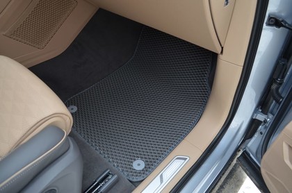 Автоковрики ЕВА не впитывают, а удерживают грязь в ячейках. Вода не катается по полу, как в резиновых половичках, однако, её все равно видно. ЕВА удобны тем, что их легко достать не пролив и вытряхнуть. Они дешевле.