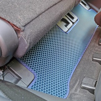 Автоковрики ЕВА не впитывают, а удерживают грязь в ячейках. Вода не катается по полу, как в резиновых половичках, однако, её все равно видно. ЕВА удобны тем, что их легко достать не пролив и вытряхнуть. Они дешевле.