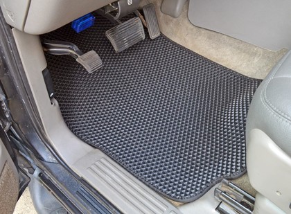 Автоковрики ЕВА не впитывают, а удерживают грязь в ячейках. Вода не катается по полу, как в резиновых половичках, однако, её все равно видно. ЕВА удобны тем, что их легко достать не пролив и вытряхнуть. Они дешевле.