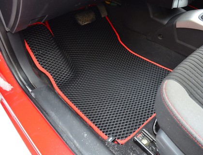 Автоковрики ЕВА не впитывают, а удерживают грязь в ячейках. Вода не катается по полу, как в резиновых половичках, однако, её все равно видно. ЕВА удобны тем, что их легко достать не пролив и вытряхнуть. Они дешевле.