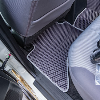 Автоковрики ЕВА не впитывают, а удерживают грязь в ячейках. Вода не катается по полу, как в резиновых половичках, однако, её все равно видно. ЕВА удобны тем, что их легко достать не пролив и вытряхнуть. Они дешевле.