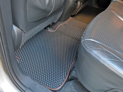 Автоковрики ЕВА не впитывают, а удерживают грязь в ячейках. Вода не катается по полу, как в резиновых половичках, однако, её все равно видно. ЕВА удобны тем, что их легко достать не пролив и вытряхнуть. Они дешевле.