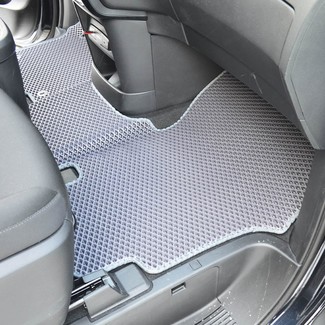 Автоковрики ЕВА не впитывают, а удерживают грязь в ячейках. Вода не катается по полу, как в резиновых половичках, однако, её все равно видно. ЕВА удобны тем, что их легко достать не пролив и вытряхнуть. Они дешевле.