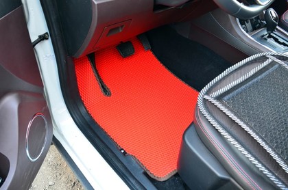 Автоковрики ЕВА не впитывают, а удерживают грязь в ячейках. Вода не катается по полу, как в резиновых половичках, однако, её все равно видно. ЕВА удобны тем, что их легко достать не пролив и вытряхнуть. Они дешевле.