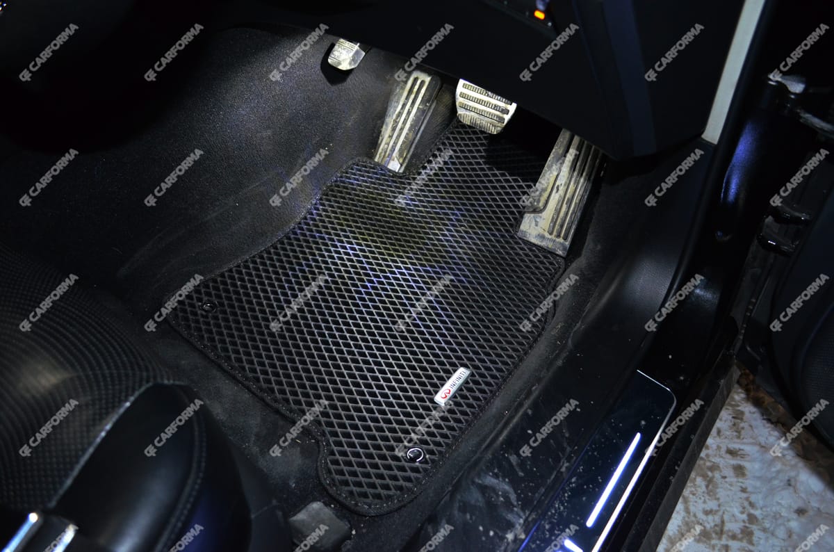 - Передние ковры полностью закрывают место под левую ногу водителя (зависит от авто)