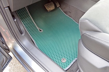 Автоковрики ЕВА не впитывают, а удерживают грязь в ячейках. Вода не катается по полу, как в резиновых половичках, однако, её все равно видно. ЕВА удобны тем, что их легко достать не пролив и вытряхнуть. Они дешевле.