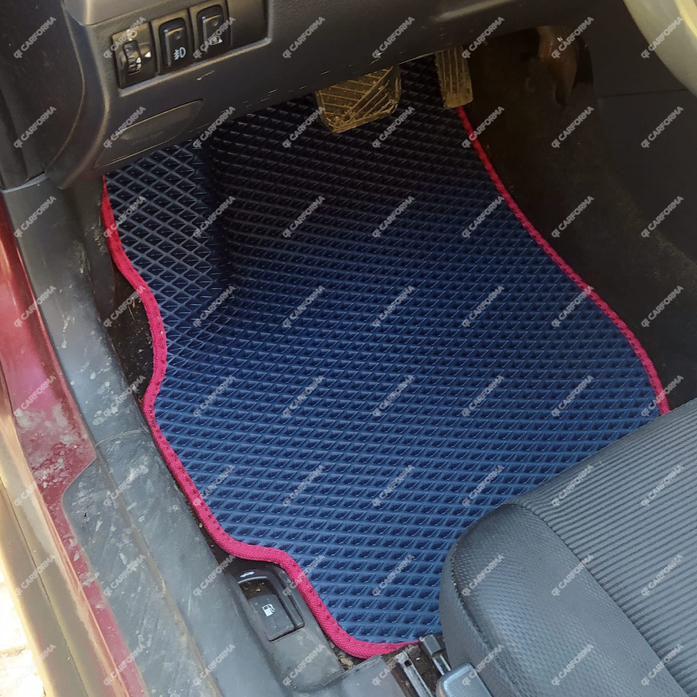 - Передние ковры полностью закрывают место под левую ногу водителя (зависит от авто)