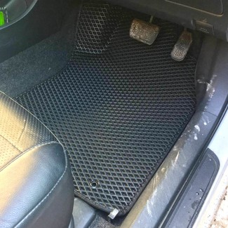 Автоковрики ЕВА не впитывают, а удерживают грязь в ячейках. Вода не катается по полу, как в резиновых половичках, однако, её все равно видно. ЕВА удобны тем, что их легко достать не пролив и вытряхнуть. Они дешевле.