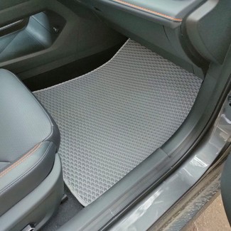 Автоковрики ЕВА не впитывают, а удерживают грязь в ячейках. Вода не катается по полу, как в резиновых половичках, однако, её все равно видно. ЕВА удобны тем, что их легко достать не пролив и вытряхнуть. Они дешевле.