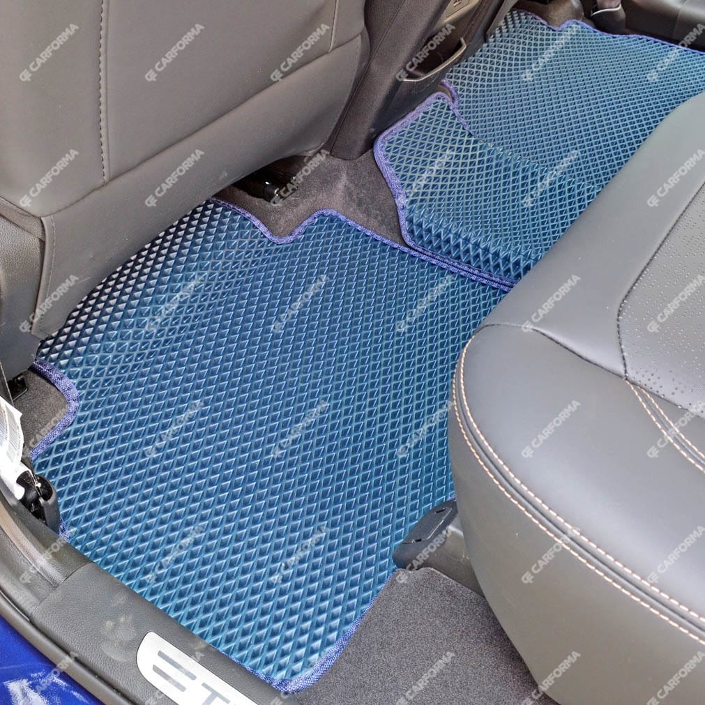 Автоковрики ЕВА не впитывают, а удерживают грязь в ячейках. Вода не катается по полу, как в резиновых половичках, однако, её все равно видно. ЕВА удобны тем, что их легко достать не пролив и вытряхнуть. Они дешевле.