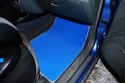 Автоковрики ЕВА не впитывают, а удерживают грязь в ячейках. Вода не катается по полу, как в резиновых половичках, однако, её все равно видно. ЕВА удобны тем, что их легко достать не пролив и вытряхнуть. Они дешевле.