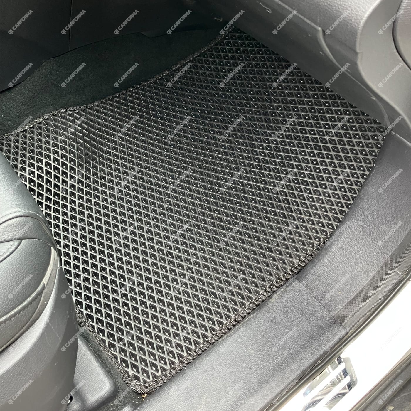 Автоковрики ЕВА не впитывают, а удерживают грязь в ячейках. Вода не катается по полу, как в резиновых половичках, однако, её все равно видно. ЕВА удобны тем, что их легко достать не пролив и вытряхнуть. Они дешевле.