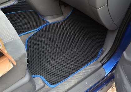 Автоковрики ЕВА не впитывают, а удерживают грязь в ячейках. Вода не катается по полу, как в резиновых половичках, однако, её все равно видно. ЕВА удобны тем, что их легко достать не пролив и вытряхнуть. Они дешевле.