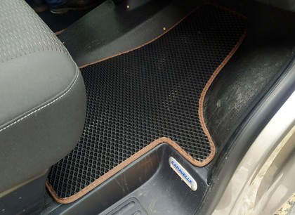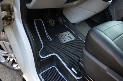 Автоковрики ЕВА не впитывают, а удерживают грязь в ячейках. Вода не катается по полу, как в резиновых половичках, однако, её все равно видно. ЕВА удобны тем, что их легко достать не пролив и вытряхнуть. Они дешевле.